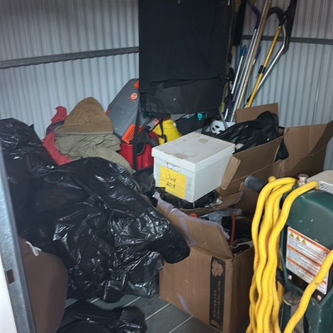 10 x 10 Boxes, Bags, Buckets, Office desk, File cabinet, Floor buffer, Lawn tools