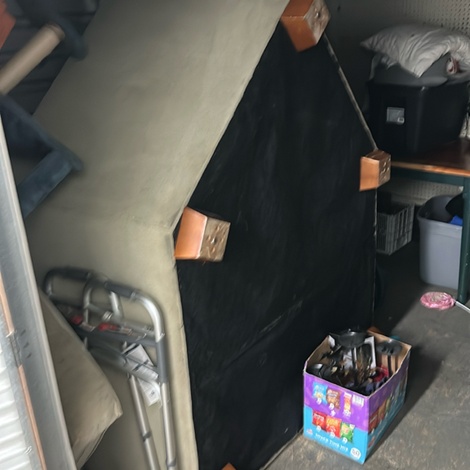 10 x 10 Boxes, Couch, Table, Vacuum, Totes, Bags, Box fan, Furniture