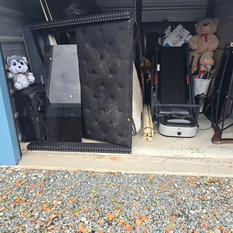 10 x 10 Appears To Have Bed Frame, Tread Mill, TV Stand, Stuffed Animals, Furniture, Household Goods, Misc Items